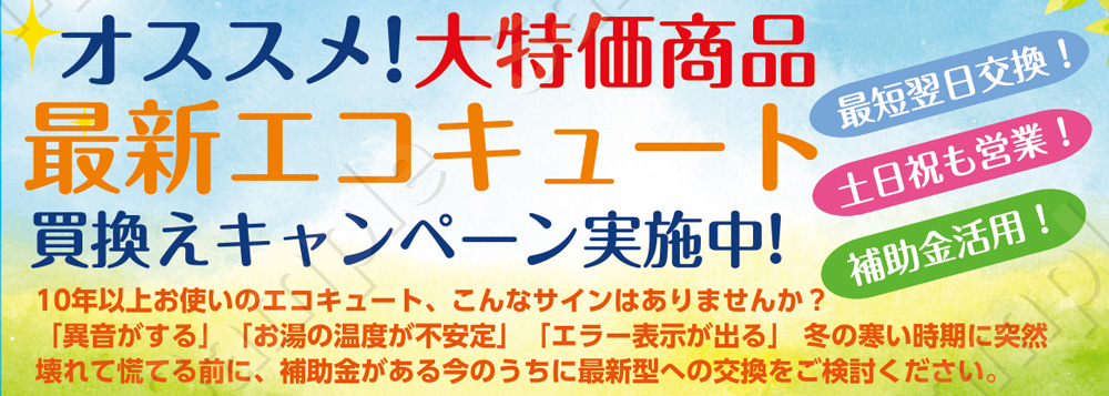 - 2026 2/12 「エコキュートお買い得セール・給湯省エネ事業補助金キャンペーン」を開始しました!