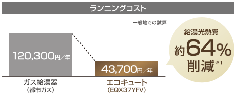 空気を圧縮して温度を上昇させるために電気を使用しますが、ガス給湯器と比べ、安い夜間料金でお湯を沸かすため経済的です。